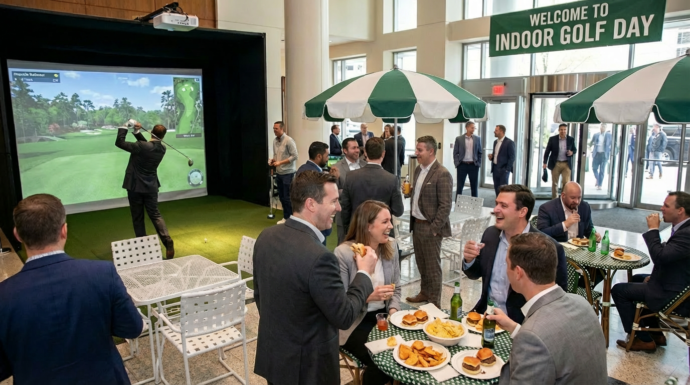 Event-Komplettpaket: Thematische Golf-Einführung, Anfänger-Coaching, Golf-Simulationstechnik & Team-Challenge Gestaltung. Vom ersten Schwung bis zur Siegerehrung alles inklusive.
